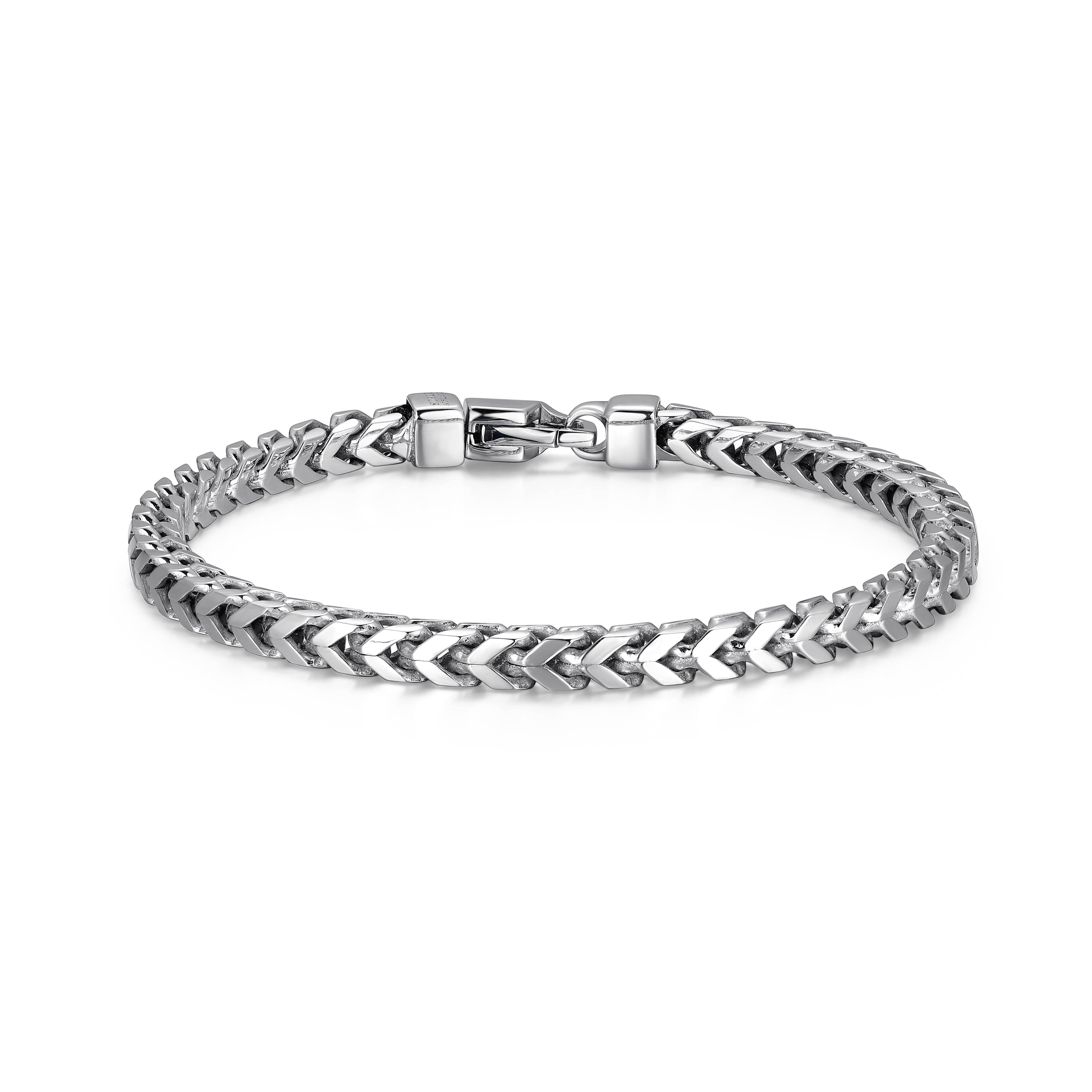 Italian Chain Rhodium Plated 4-Side Franco Chain Bracelet - 8.5"