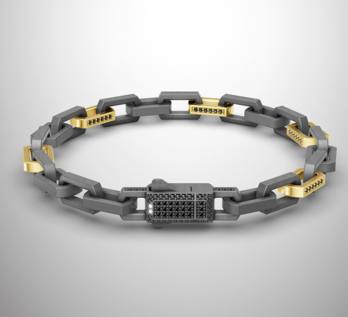 MATAY Men’s Tantalum & 14K Yellow Gold Black Diamond Bracelet - 7 MM