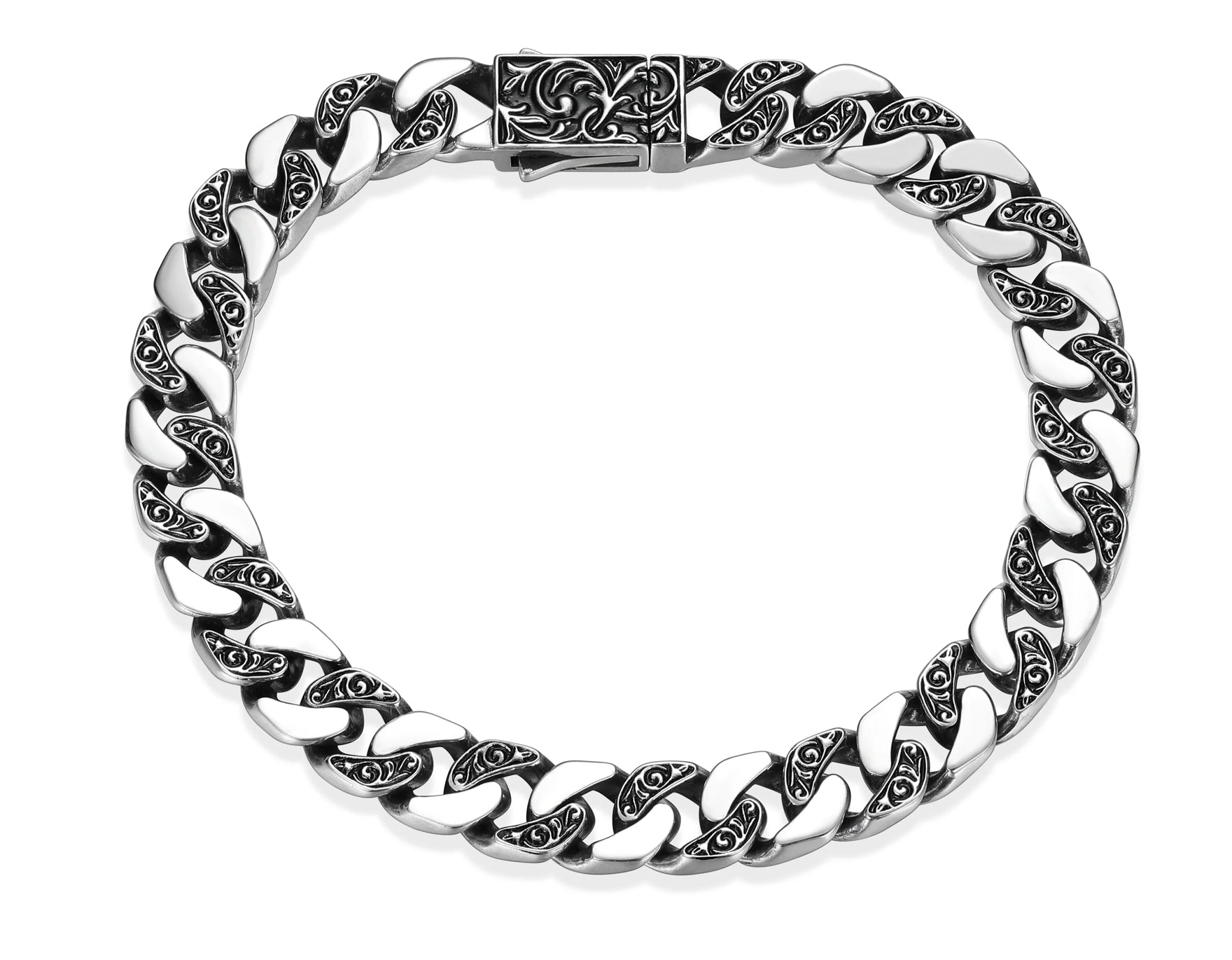 Chisel Contrast Cuban Link Chain Bracelet in Oxidized Rhodium-Plated Sterling Silver